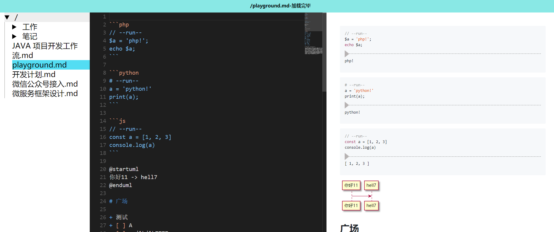 今天兴起给它加了一个运行代码的功能,感觉内涵又提升了一大截。也不是说向 Emacs Org-mode 迈进,功能合用就好,只求自己用得顺手而已。