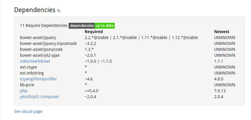 # 发布在 packagist.org (opens new window) 上面的包的状态